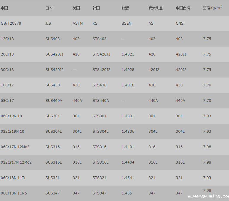 不锈钢板标准钢密度表